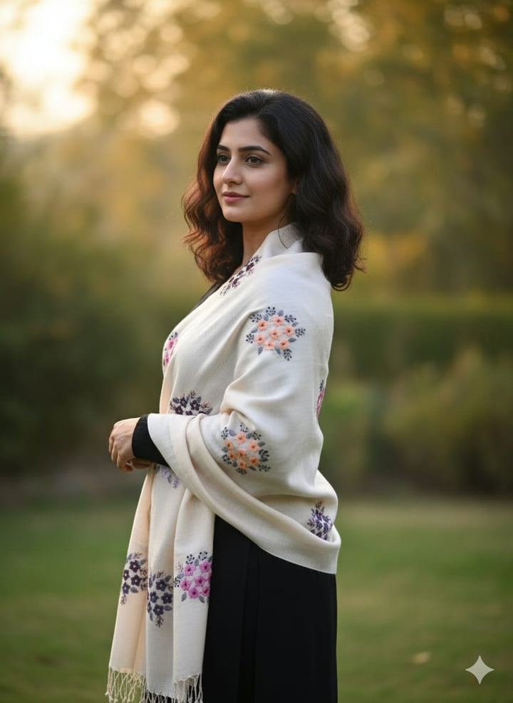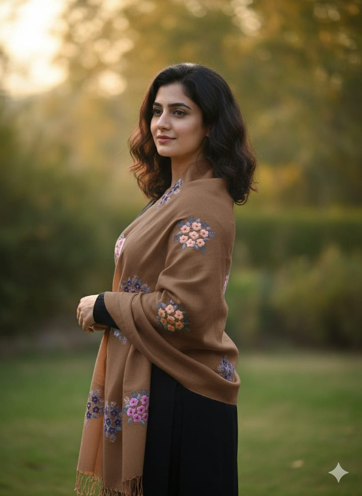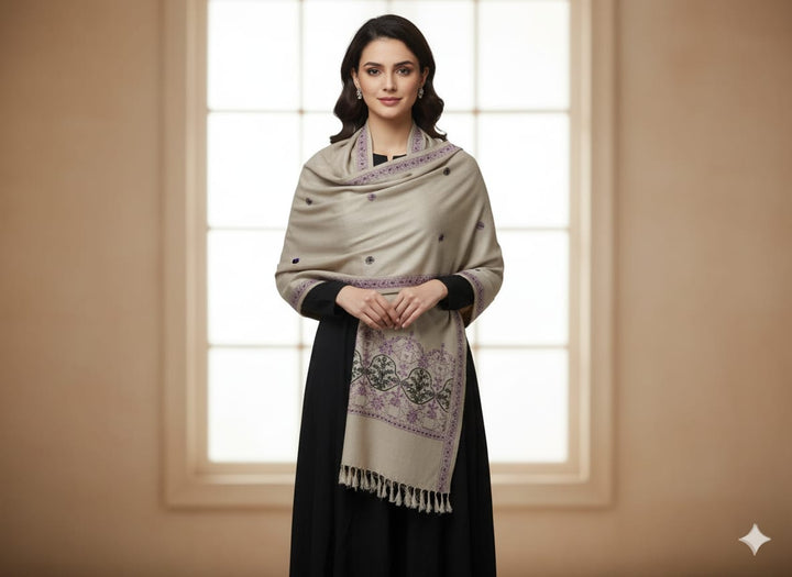 Discover the charm of traditional Swati artistry with our Handmade Beige Pashmeena Shawl — a timeless blend of luxury, warmth, and cultural elegance.